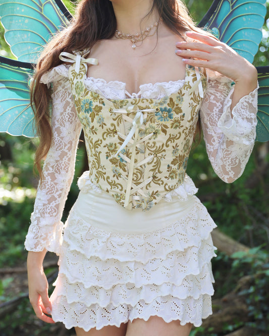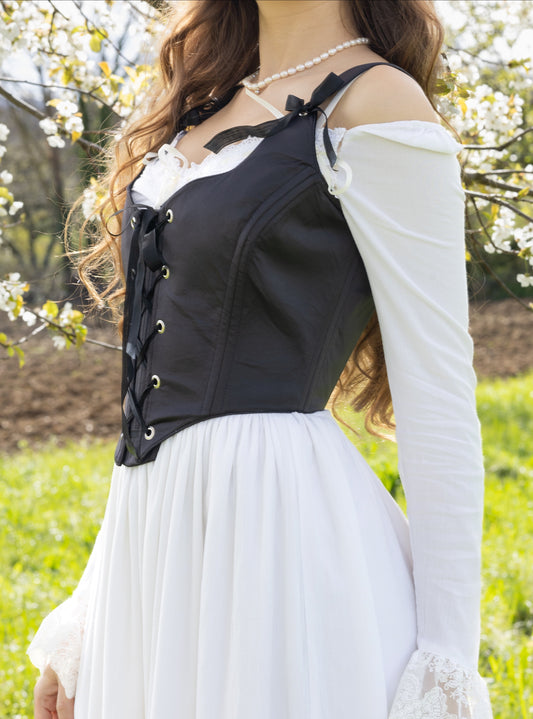 Les corsets délicats sont de véritables trésors de raffinement, aux étoffes fines et aux détails précieux.